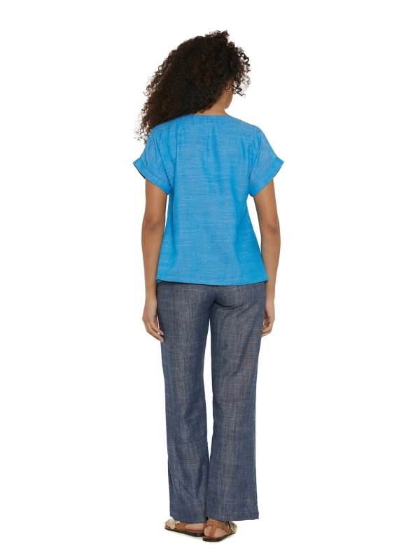 Blusa a manica corta realizzata in cotone 50% e lino 50%, tessuto fresco e traspirante ideale per la stagione estiva. Il colore rosso rende il capo facile da abbinare sia a look casual sia a outfit più curati. La linea è semplice e comoda, perfetta per essere indossata tutti i giorni.