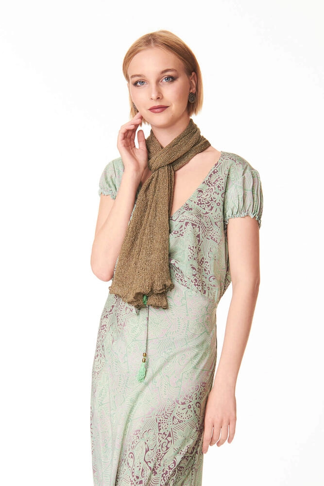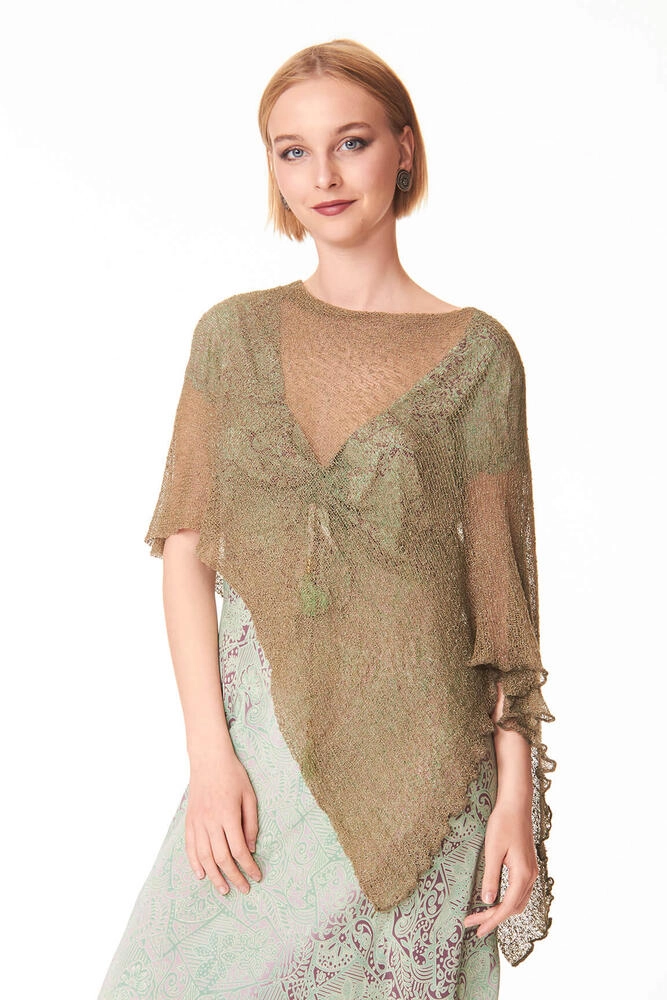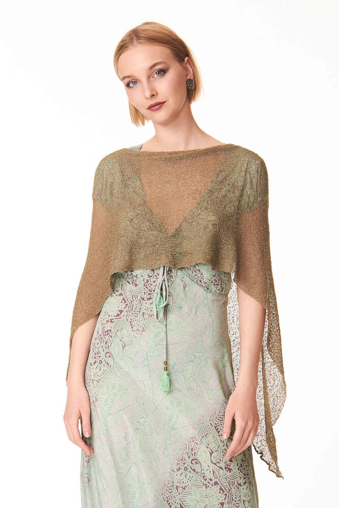 Poncho / Coprispalle multifunzione in colore Army, un tono neutro che richiama le sfumature della natura, tra verde oliva e grigio, perfetto per abbinamenti casual chic. Questo capo di abbigliamento, Made in Indonesia, è un accessorio moda donna estremamente versatile, ideale sia per le cerimonie che per l’uso quotidiano.