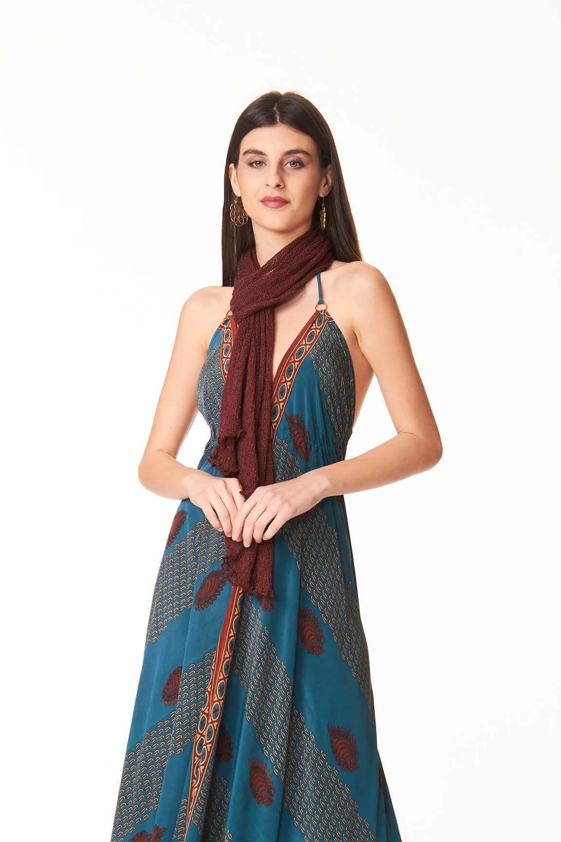 Il cioccolato, colore caldo, si abbina perfettamente a tonalità neutre come beige, crema e grigio, ma anche a colori accesi come arancione e verde oliva. Perfetto in ogni stagione, lo puoi indossare come coprispalle su abiti estivi o come sciarpa nei mesi più freddi.