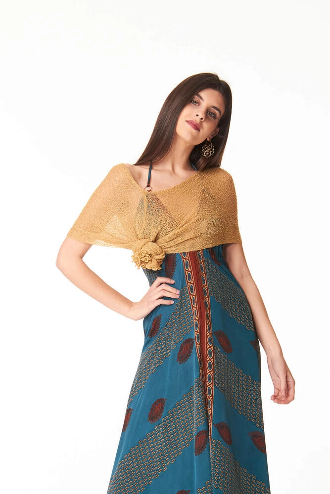 Coprispalle, Ponchetto Incenso, un colore leggermente dorato, realizzato in morbido rayon. Un accessorio versatile che si presta a molteplici abbinamenti, sia per uno stile casual che per un tocco etnico chic.