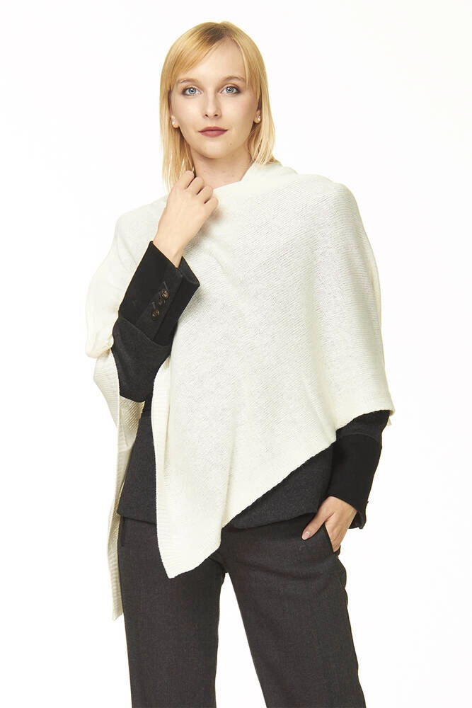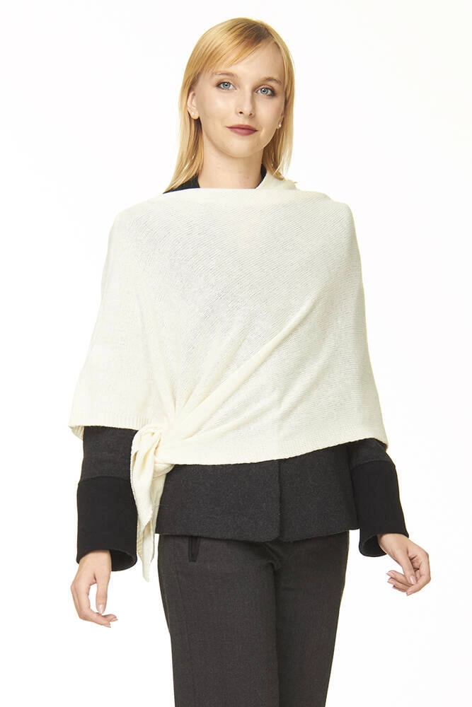 Il Ponchetto in lana merino e cashmere è un accessorio moda donna, ideale per affrontare la stagione autunno-inverno. Il colore perla lo rende perfetto per abbinamenti eleganti e moderni.